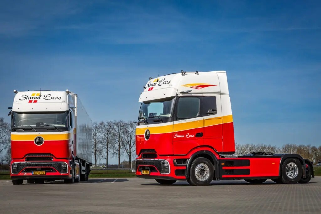 Simon Loos heeft vorige week de eerste drie van vijf Mercedes-Benz eActros 600 trekkers met…